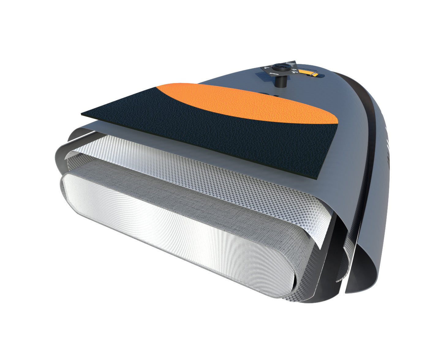 De plastic triangel die onder het board past. Dit helpt het board in een rechte lijn te houden als je peddelt